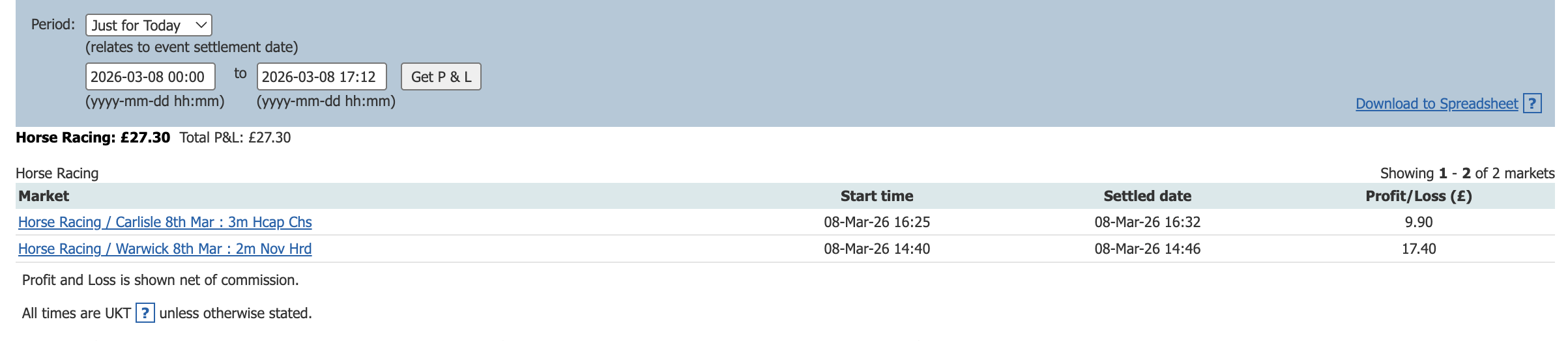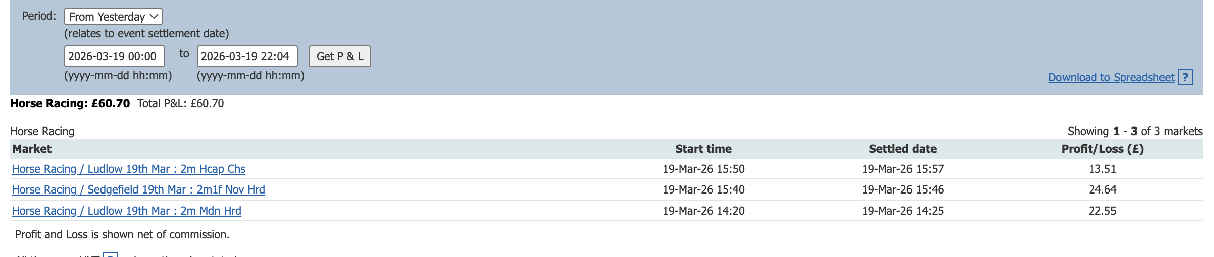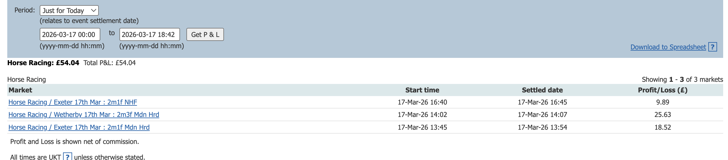 One bet one lay today and a small profit to add to the total.
