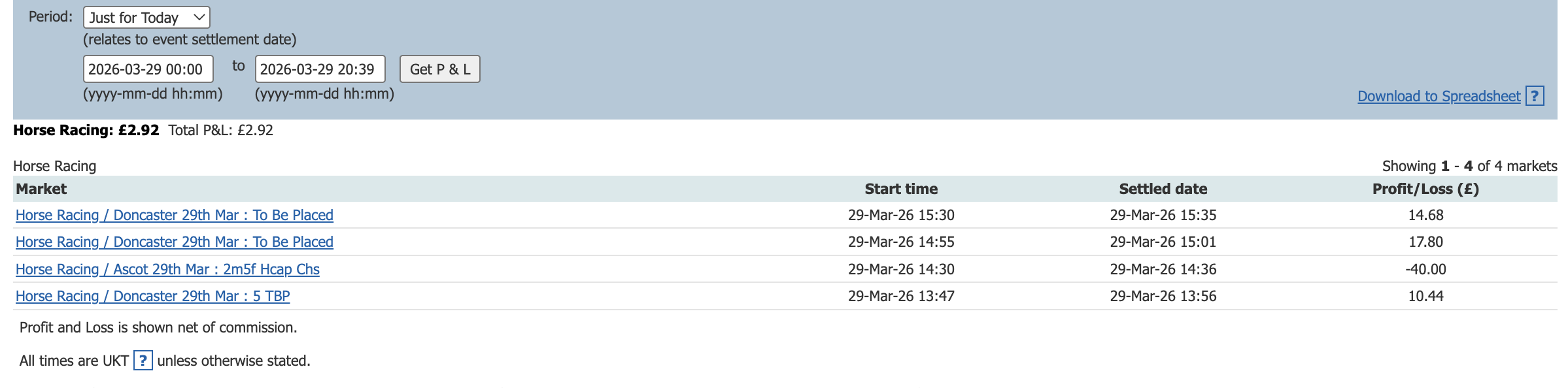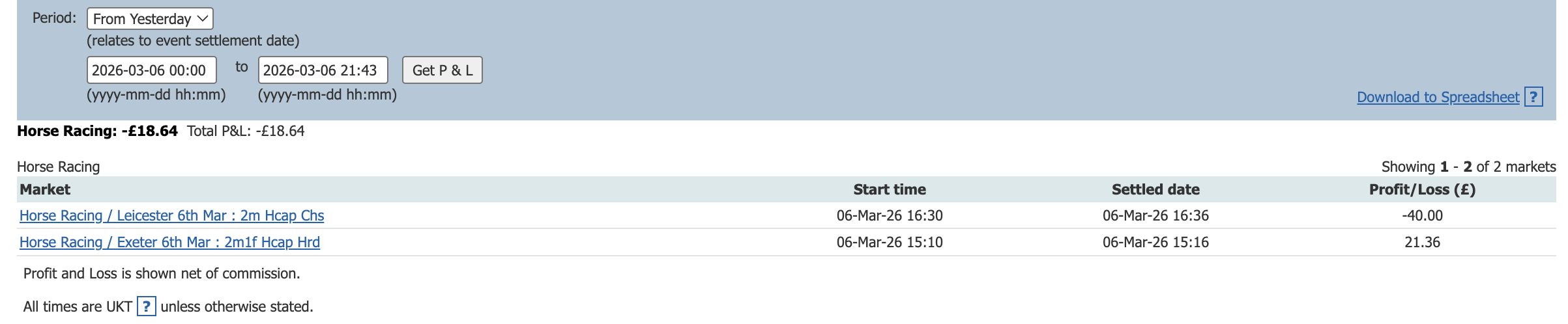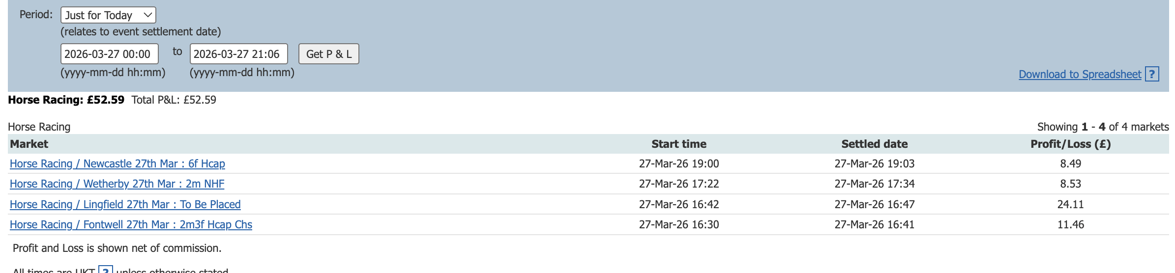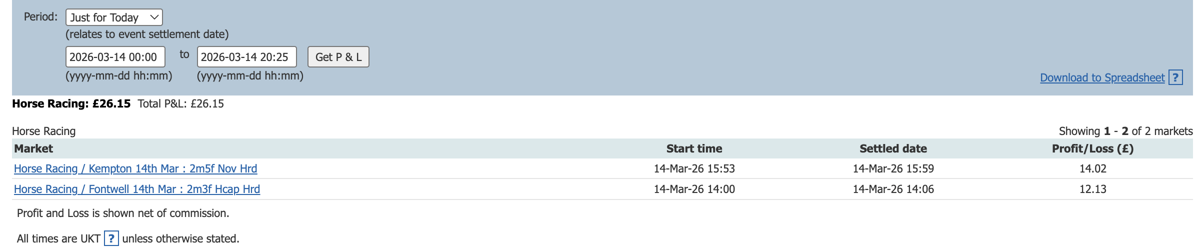 One bet one lay today and a small profit to add to the total.