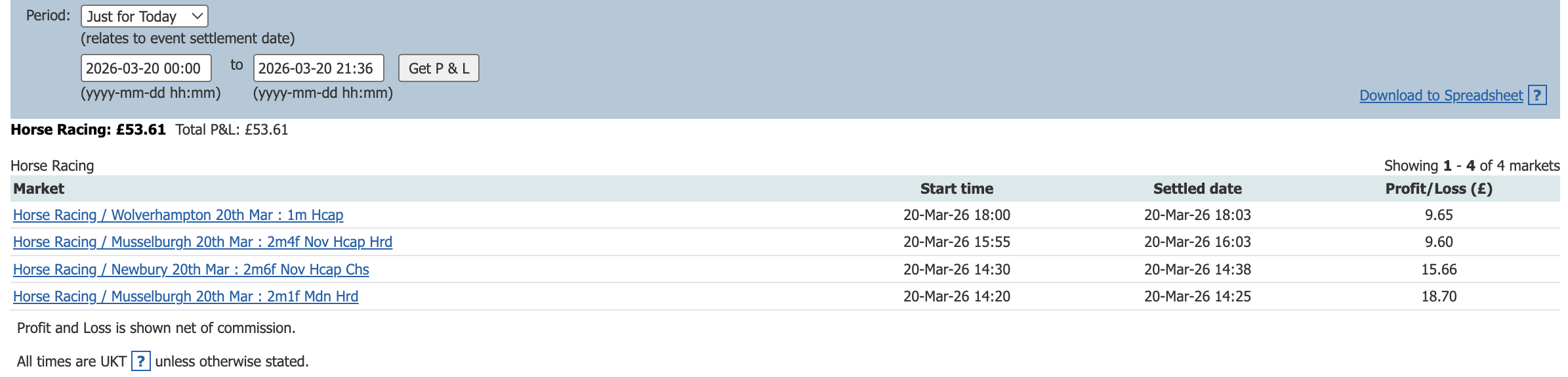 Running P/L: £53.44